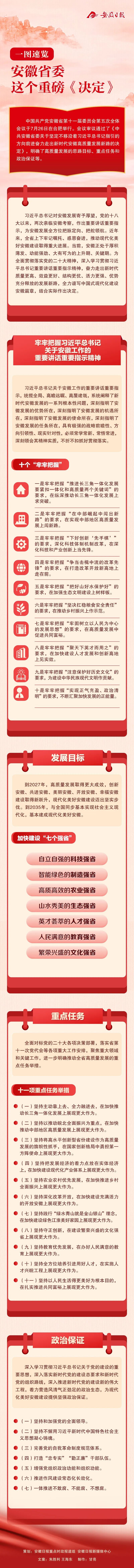 2023年7月26日中國共產黨安徽省第十一屆委員會第五次全體會議通過《中共安徽省委關于堅定不移沿著習近平總書記指引的方向前進奮力走出新時代安徽高質量發展新路的決定》,現將有關整理版本轉發給大家,請大家對照學習。