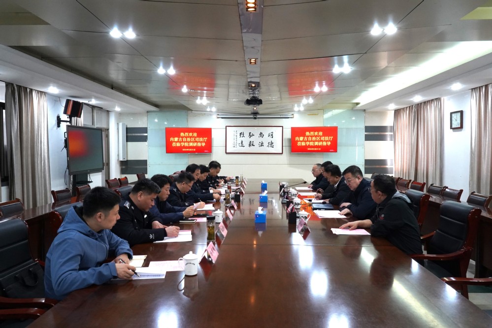 3月21日,內蒙古自治區司法廳黨委委員、副廳長王平一行蒞臨學院調研學院辦學模式和司法部重點實驗室建設。安徽省司法廳黨委委員、副廳長、一級巡視員張國安,院黨委書記桂勇,院黨委副書記、院長操申斌,院黨委委員、副院長沈友耀,省司法廳科技信息化處和學院相關部門負責人參與調研。