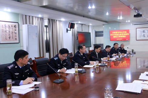 為順利做好分類考試招生測試各項工作,學院高度重視,根據省教育廳、省教育招生考試院相關文件要求,提前謀劃部署,制定《安徽警官職業學院2024年度分類考試招生工作實施方案》,成立分類考試招生測試工作領導小組和七個專項工作組,先后召開考試工作協調會和考務培訓會。