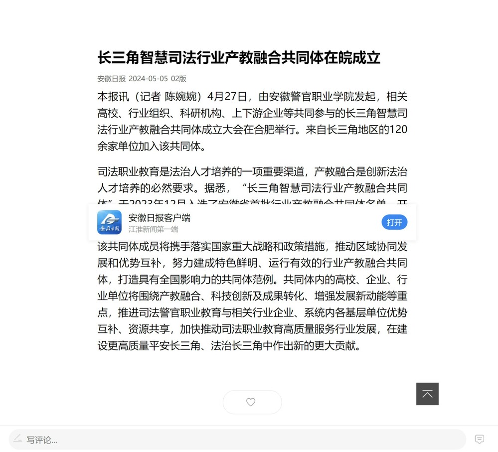 【安徽日報】長三角智慧司法行業在皖成立產教融合共同體