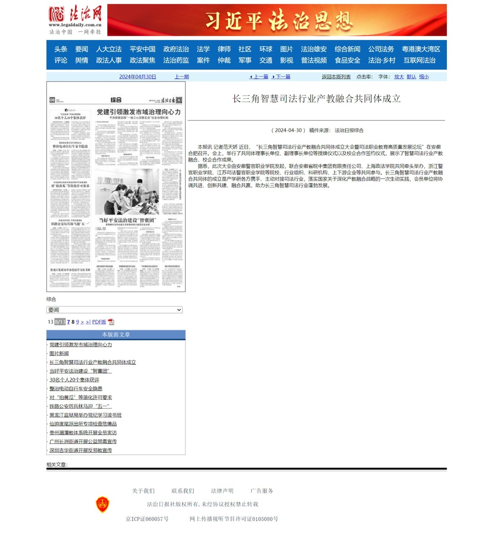 【法治日報】長三角智慧司法行業產教融合共同體成立