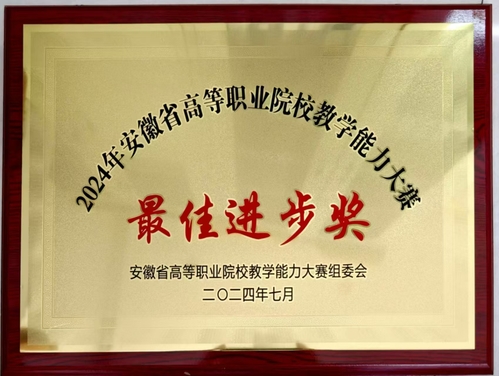 近日,安徽省教育廳發布《關于公布安徽省高等職業院校教學能力大賽獲獎名單的通知》(皖教秘高〔2024〕100號),學院斬獲一等獎1項、二等獎2項、三等獎2項,并獲安徽省高等院校教學能力大賽“最佳進步獎”。優秀的成績既體現了學院教師專業教學水平,又反映了學院高質量發展成果。
