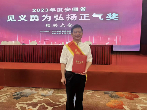 8月30日上午,2023年度安徽省見義勇為弘揚正氣獎頒獎大會在合肥舉行。省委副書記、政法委書記虞愛華出席會議并講話。省政府副省長、公安廳廳長覃衛國主持會議。省人大常委會副主任魏曉明,省政協副主席羅平,省高院院長田云鵬,武警安徽省總隊政委姚允輝,省見義勇為基金會理事長薛江武出席。學院信息管理系黨總支副書記黃衛平同志獲評2023年度“安徽省見義勇為弘揚正氣獎”三等獎。