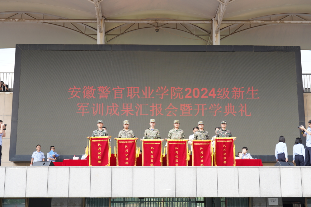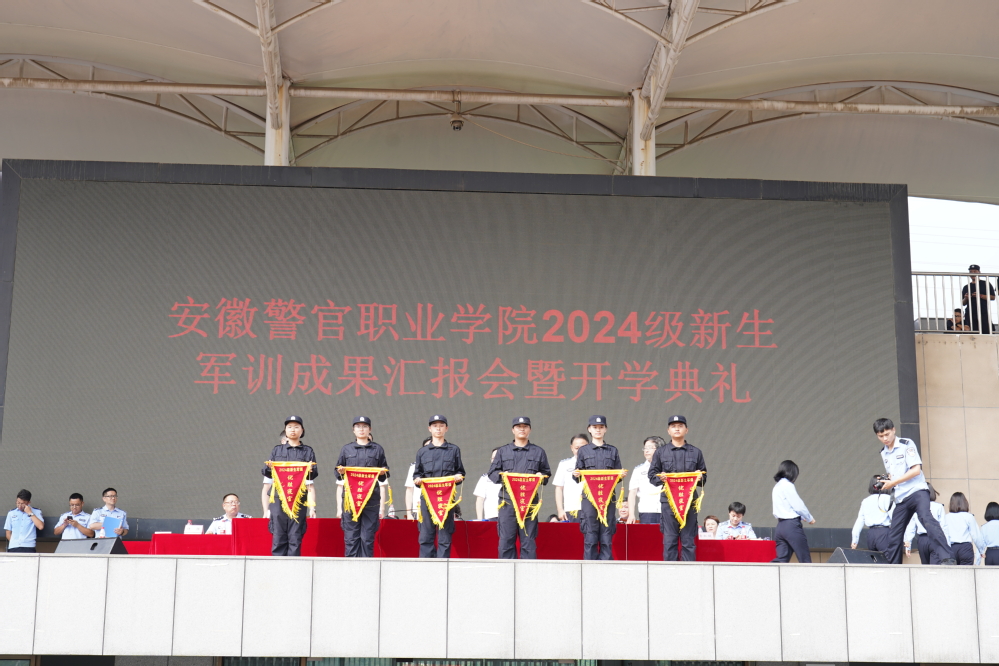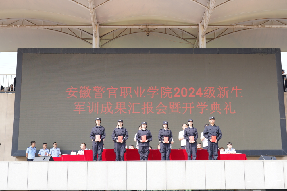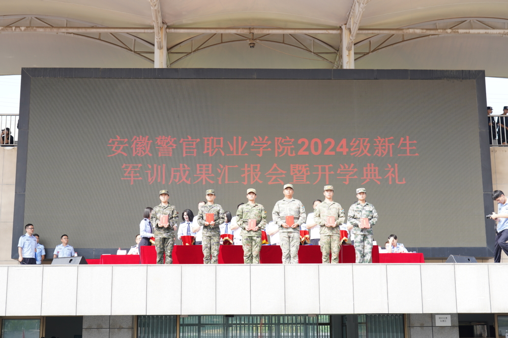 匯報展示結束后,與會領導為隊列優勝排、內務優勝寢室、優秀教官和軍訓標兵頒獎。