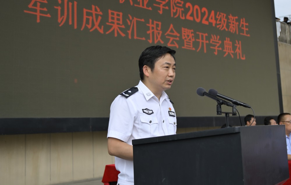 桂勇在講話中對同學們圓滿完成各項訓練任務表示衷心祝賀,對教官和老師們辛勤付出表示感謝,對軍訓匯報成果予以充分肯定。他指出,軍訓作為大學生活的第一堂課,其意義遠不止于簡單的隊列訓練和體能挑戰,它是一場關于信念、勇氣與責任的深刻洗禮,希望同學們能夠將軍訓中學到的寶貴品質和精神風貌帶入日常的學習和生活中去,在學習上追求卓越、勇于探索;在生活中嚴于律己、寬以待人;銘記軍訓的初心和使命,牢記“明德尚法,弘毅致遠”的校訓,以實際行動詮釋新時代警院學子的責任與擔當。