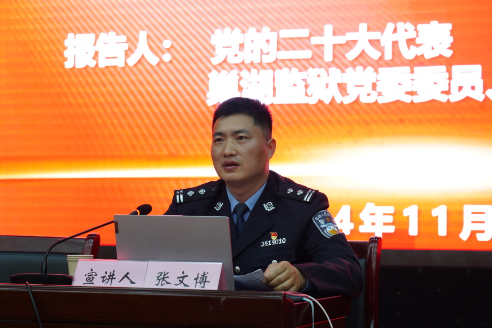 為深入學習宣傳貫徹黨的二十屆三中全會精神,凝聚共識,激發奮進力量,推動學院教育事業高質量發展,近日,學院在西區學術報告廳舉辦了學習貫徹黨的二十屆三中全會精神宣講會。巢湖監獄黨委委員、政治處主任張文博應邀來院開展宣講。院黨委委員、副院長沈友耀主持會議,院黨委副書記、院長操申斌及在家院領導出席,學院黨員教職工、青年團干、團員代表和學生代表共270余人參加。