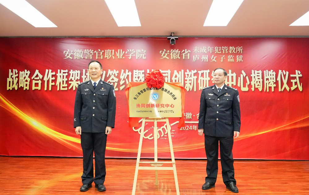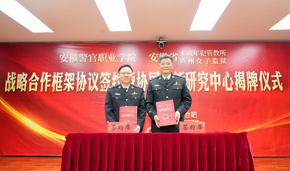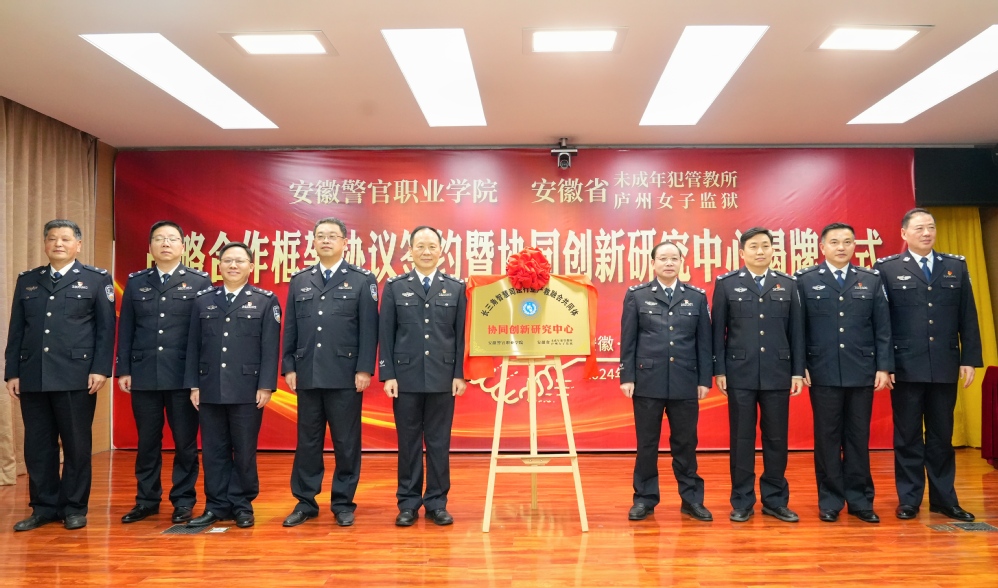11月25日下午,學院與安徽省未成年犯管教所(廬州女子監獄)舉行戰略合作框架協議簽約暨協同創新研究中心揭牌儀式。省司法廳黨委委員、政治部主任宋書嶺,省監獄管理局局長胡來龍,政委梁國強出席儀式。學院黨委書記桂勇,省未管所黨委書記鄧太平出席儀式并致辭。學院黨委副書記、院長操申斌,省未管所黨委副書記、所長宮達參加儀式。學院黨委委員、副院長歐元軍主持儀式。