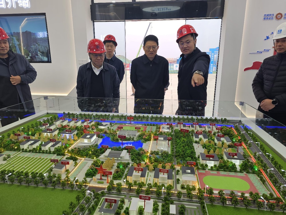 胡孔勝一行察看了項目建設智慧展廳、施工質(zhì)量樣板展示和安全教育培訓體驗館,詳細了解項目建設整體情況、施工質(zhì)量標準和安全施工規(guī)范等內(nèi)容;實地查看了新校區(qū)行政服務中心單體施工現(xiàn)場,詳細詢問了工程進度及資金使用情況,強調(diào)要確保新校區(qū)工程建設進度和質(zhì)量,不斷強化項目安全管理。