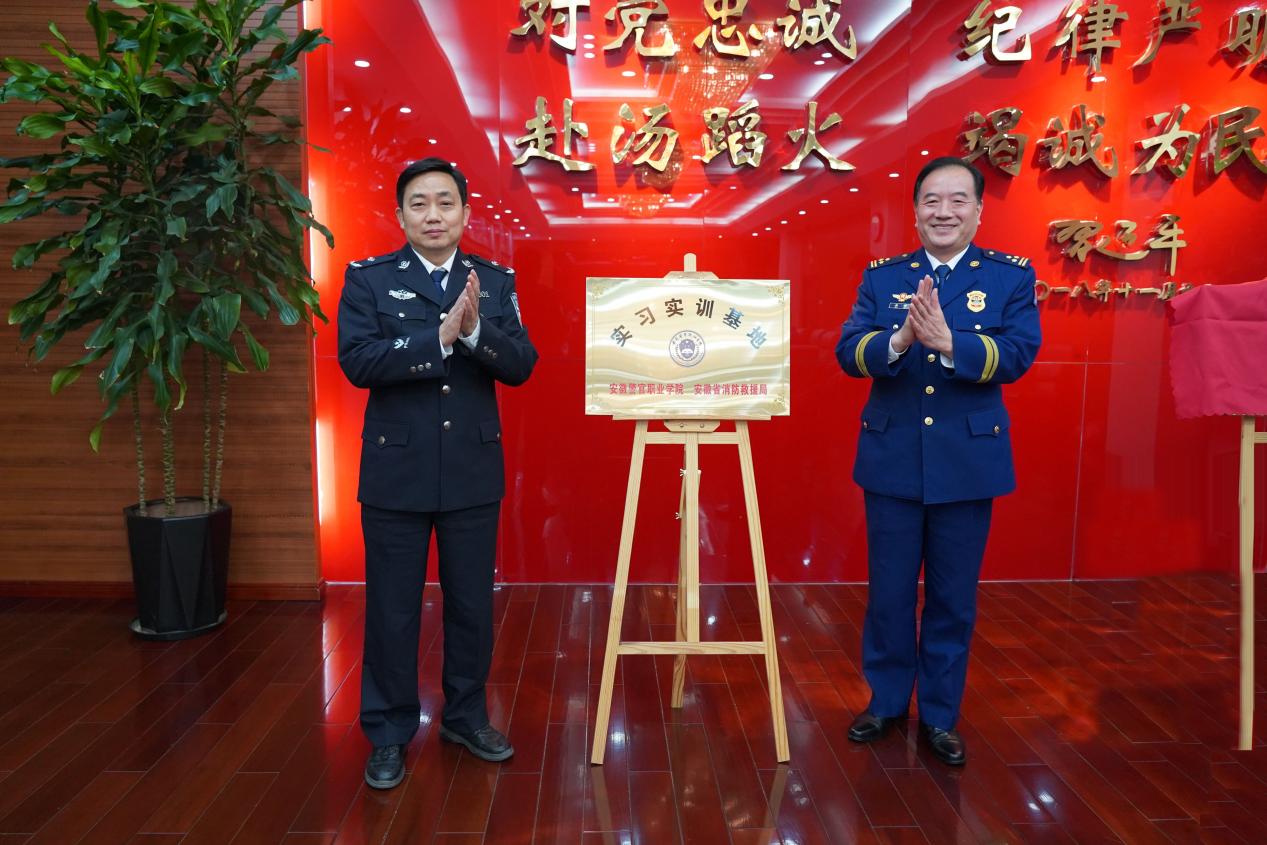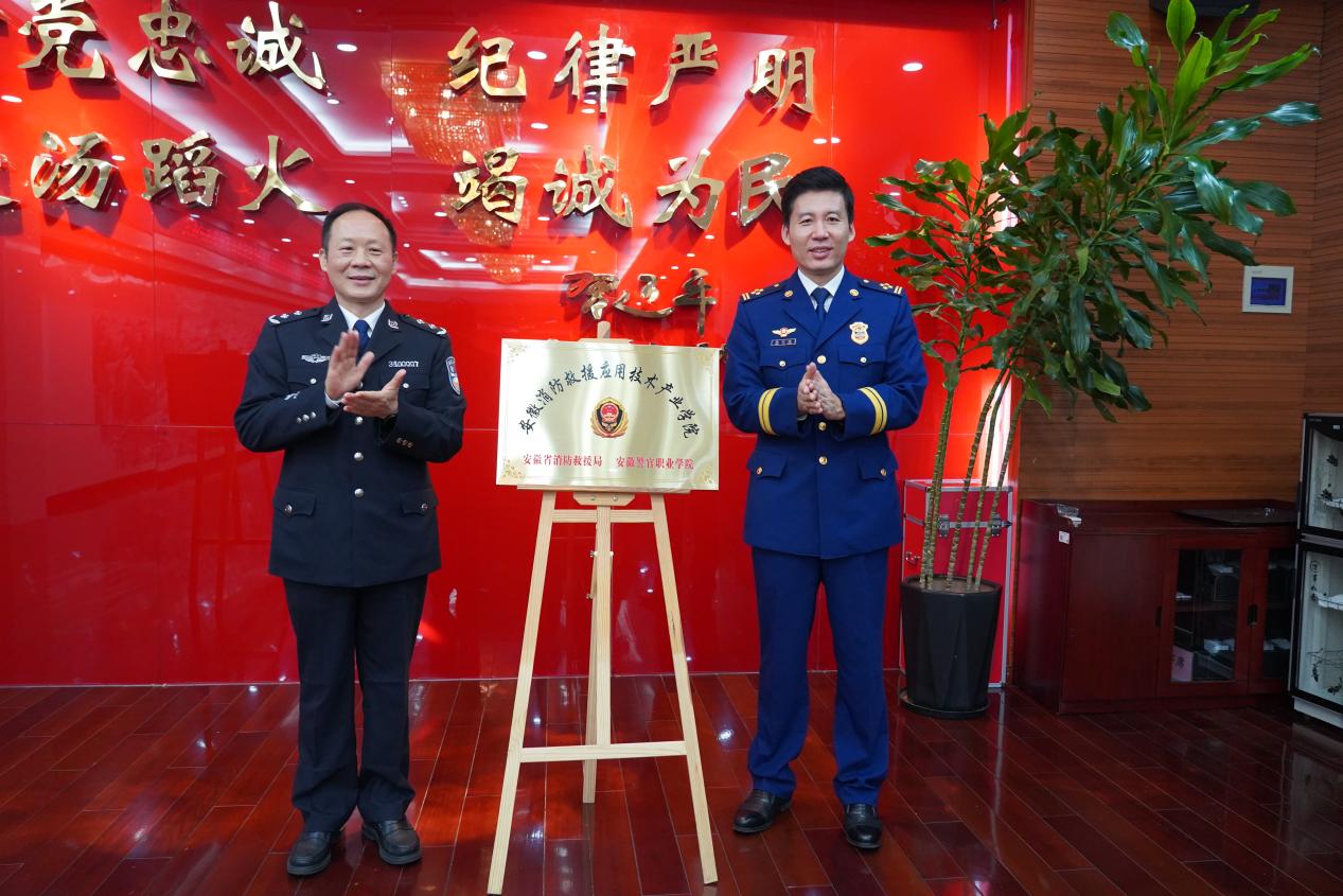 儀式中,雙方簽署合作框架協議,并共同為“安徽警官職業學院實習實訓基地”和“安徽消防救援應用技術產業學院”揭牌。