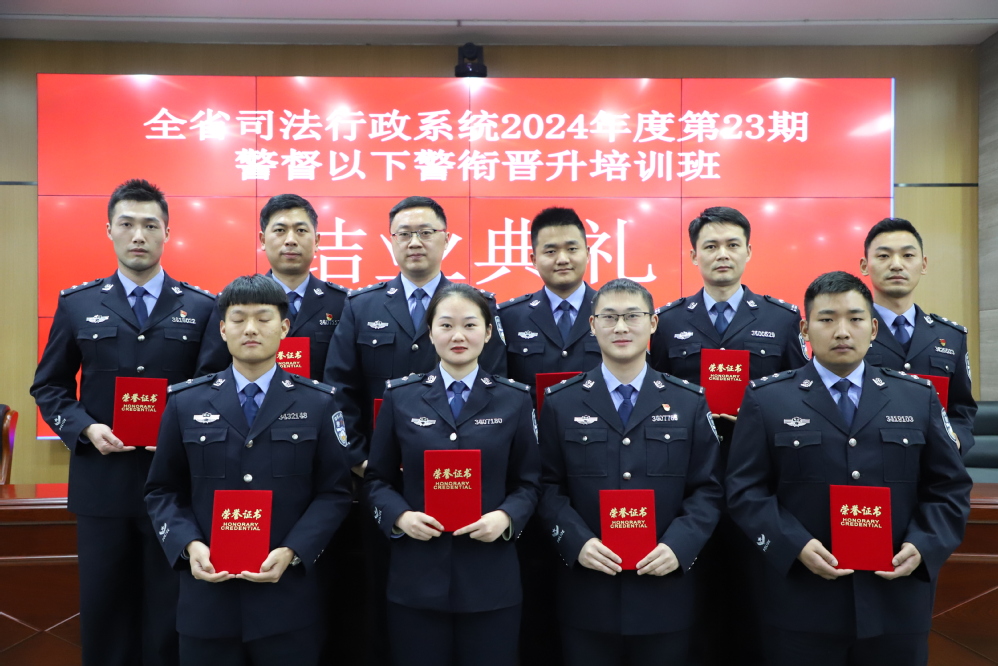 12月30日上午,全省司法行政系統2024年度第23期警督以下警銜晉升培訓班結業典禮在安徽警官職業學院繼續教育學院舉行。安徽警官職業學院繼續教育學院院長許起鵬、黨總支副書記王敏,警訓科人員、培訓班全體學員參加儀式,典禮由王敏主持。