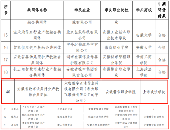 近日,安徽省教育廳發布《關于公布行業產教融合共同體首批培育項目中期評估結果、第二批培育項目名單暨縣域產教融合體培育項目名單的通知》(皖教秘職成〔2025〕19號),學院牽頭建設的多個項目喜獲佳績,充分彰顯了在深化產教融合、服務地方發展中的示范引領作用。其中,長三角智慧司法行業產教融合共同體順利通過中期評估,安徽省數字法務行業產教融合共同體入選第二批行業產教融合共同體培育項目名單,“平安長豐”縣域產教融合體、霍邱縣現代服務業縣域產教融合體和潛山市數智旅游業縣域產教融合體入選首批縣域產教融合體培育項目名單。