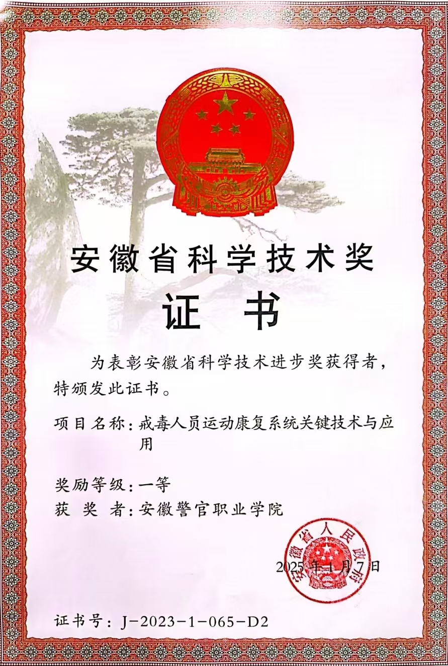 5月12日,安徽省科技創(chuàng)新大會(huì)在合肥召開。會(huì)上,獎(jiǎng)勵(lì)了2023年度對(duì)我省科學(xué)技術(shù)進(jìn)步、經(jīng)濟(jì)社會(huì)發(fā)展作出突出貢獻(xiàn)的科學(xué)技術(shù)人員和組織。學(xué)院作為第二完成單位,與中國(guó)科學(xué)院合肥物質(zhì)科學(xué)研究院等7家單位合作的研究成果《戒毒人員運(yùn)動(dòng)康復(fù)系統(tǒng)關(guān)鍵技術(shù)與應(yīng)用》,榮獲安徽省科學(xué)技術(shù)進(jìn)步獎(jiǎng)一等獎(jiǎng)。這是學(xué)院首次獲得安徽省科學(xué)技術(shù)進(jìn)步一等獎(jiǎng)這一殊榮,也是牽頭建設(shè)的司法部生命科學(xué)和信息技術(shù)重點(diǎn)實(shí)驗(yàn)室在相關(guān)研究領(lǐng)域取得的重大進(jìn)展。