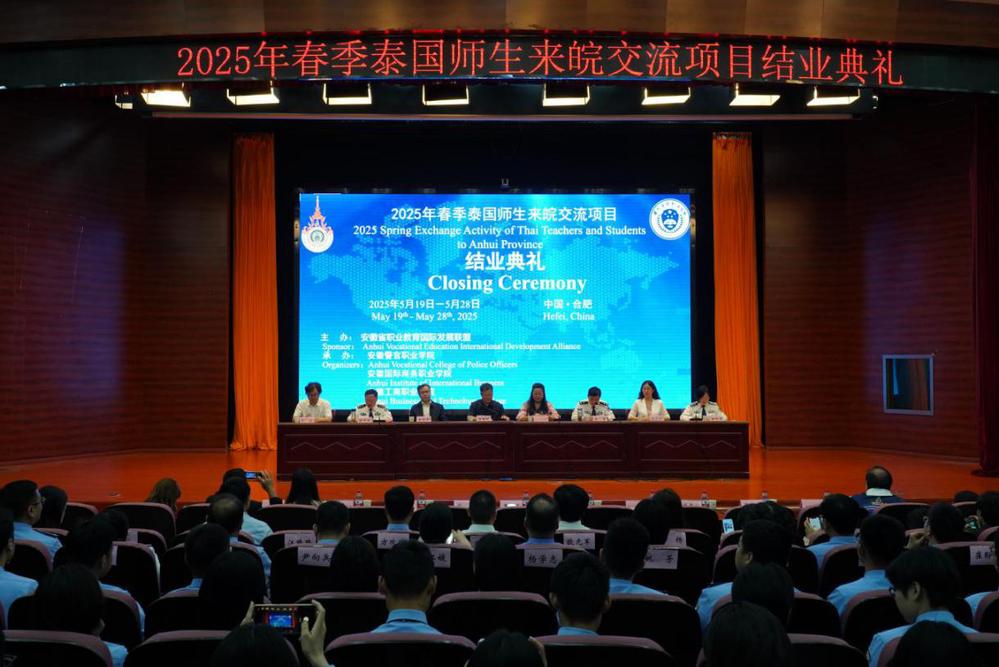 5月27日下午,學(xué)院舉行泰國(guó)皇家理工大學(xué)來(lái)皖交流項(xiàng)目結(jié)業(yè)典禮。安徽省教育發(fā)展基金會(huì)理事長(zhǎng)王佩剛,安徽省司法廳二級(jí)巡視員焦鳳軍,安徽國(guó)際商務(wù)職業(yè)學(xué)院黨委委員、副院長(zhǎng)凌雙英,安徽工商職業(yè)學(xué)院黨委委員、黨委宣傳統(tǒng)戰(zhàn)部部長(zhǎng)孔成,學(xué)院在家領(lǐng)導(dǎo)班子成員出席會(huì)議,泰國(guó)皇家理工大學(xué)師生和學(xué)院師生代表參加了結(jié)業(yè)典禮。結(jié)業(yè)儀式由院黨委副書(shū)記、院長(zhǎng)操申斌主持。
