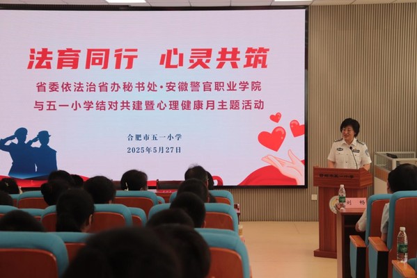 此次活動匯聚多方力量協同開展。學院黨委委員、副院長劉靖華,省委依法治省辦秘書處黨支部副書記、副處長韓后勇,團市委四級調研員、統聯部部長劉暢,合肥市廬陽區教體局黨委副書記、副局長李金梅等領導親臨現場,給予專業指導與支持。學院學生處、團委、學生心理健康教育與咨詢中心、社區矯正教研室相關負責人及專家積極參與。五一小學執行校長謝暉帶領全體師生共同參與,為活動的順利進行增添活力與熱情。