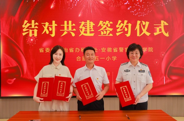 隨后,學院與合肥市五一小學現場簽署《結對共建協議》,這份協議猶如一座堅實的橋梁,有效推動法治資源與心理關懷融入校園。合肥市五一小學正式聘任院團委、學生心理健康教育與咨詢中心、矯正教研室相關負責人及專家擔任校外輔導員、心理副校長和法治副校長。這一舉措不僅是對受聘人員的認可與信任,更是一份沉甸甸的責任,標志著“法治護盾+心理關懷+社會支持”三位一體的協同育人體系正式落地生根。