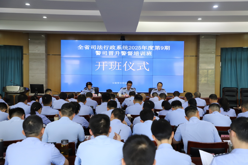 6月4日上午,全省司法行政系統2025年度第9期警司晉升警督培訓班在警官學院繼續教育學院多功能廳教室舉行開班儀式。繼續教育學院黨總支書記、警訓科人員、培訓班全體學員參加儀式。
