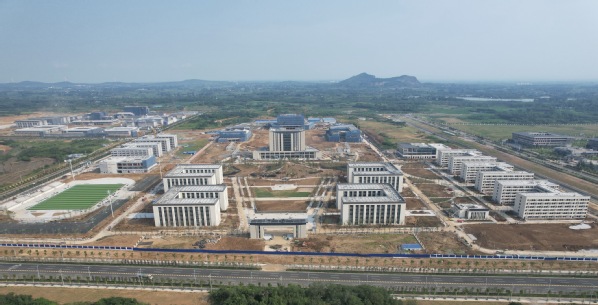 操申斌一行先后查看了北大門、教學樓、實驗實訓中心、尚法廣場、學生食堂、學生宿舍及行政樓等,全面調研新校區項目一批次工作進展及安排。