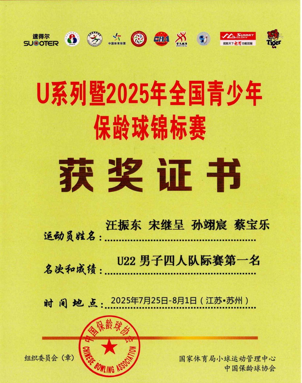 近日,2025年全國青少年保齡球錦標賽在蘇州舉行。我院2024級刑事執行專業1班學生汪振東與隊友并肩作戰,勇奪U22男子四人隊際賽冠軍及男子團體冠軍。
