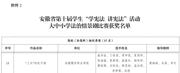 近日,由安徽省教育廳主辦的第十屆全省學生“學憲法講憲法”活動評選結果揭曉。我院學子在多個賽項中表現優異,憑借扎實的法學素養和出色的現場發揮,榮獲多個獎項,充分展現了學院法治教育的豐碩成果和警院學子的昂揚風采。