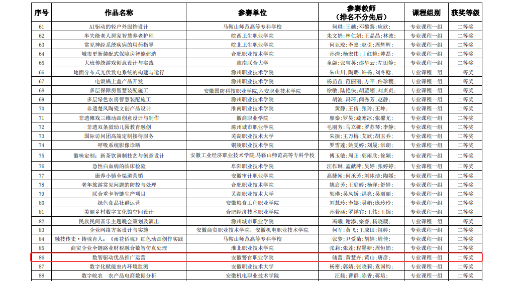 近日,安徽省教育廳發布《關于公布2025年安徽省中等職業學校教育教學技能競賽、安徽省高等職業院校教學能力大賽獲獎名單的通知》(皖教秘職成〔2025〕67號),我院教師單獨組隊和聯合組隊共計8項作品獲獎,其中一等獎1項、二等獎2項、三等獎5項,充分展現了學院在職業教育教學改革道路上的扎實步伐與豐碩成果。