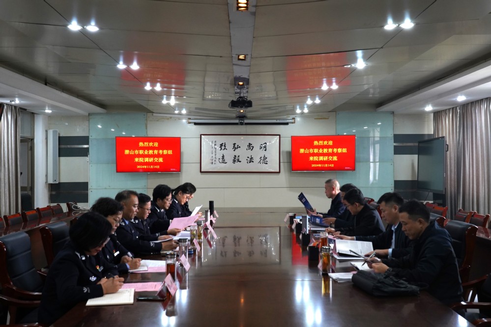 11月14日, 潛山市人民政府黨組成員、副市長宋子明率職業教育考察組一行五人來學院調研交流。學院黨委副書記、院長操申斌主持召開調研座談會,黨委委員、副院長歐元軍出席會議。院黨政辦、教務處、學生處、公共管理系、信息管理系部門負責人參加會議。