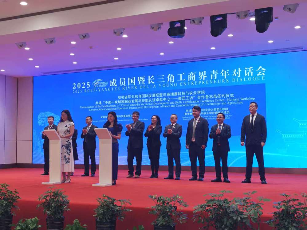 6月6日,柬埔寨勞動與職業培訓部代表團與安徽省教育發展基金會(安徽省職業教育國際發展聯盟)在黃山職業技術學院舉行座談會。學院作為參建“中國-柬埔寨職業發展與技能認證卓越中心——徽匠工坊”項目的7所職業院校之一,操申斌在座談會上向柬埔寨勞動與職業培訓部代表團一行簡單介紹了學院的辦學情況,并就項目備忘錄中的具體問題作交流發言。時值國家大力推進“職教出?!睉鹇灾H,學院將與省內兄弟院校攜手,共同為譜寫職業教育領域國際交流新篇章作出更大貢獻。
