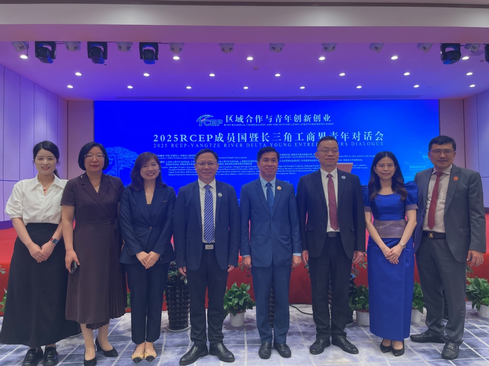 學院黨委副書記、院長操申斌受邀參加論壇開幕式后,5日下午,操申斌攜學院黨政辦公室、信息管理系相關負責人,重點參與了“2025 RCEP成員國暨長三角工商界青年對話會”。作為本屆論壇的核心活動之一,對話會聚焦 “RCEP框架下職業教育合作機遇”等兩大議題展開深度研討。在職業教育議題環節,6位來自菲律賓、老撾等中外政府、高校、企業界嘉賓,圍繞區域人才協同培養、職業教育資源共享等方向展開熱烈交流,為深化職業教育國際合作把脈定向。對話會期間,操申斌作為見證嘉賓,上臺見證了馬來西亞、柬埔寨、越南、韓國等成員國在教育、旅游、醫療等多個領域與省內高職院校的合作簽約儀式。