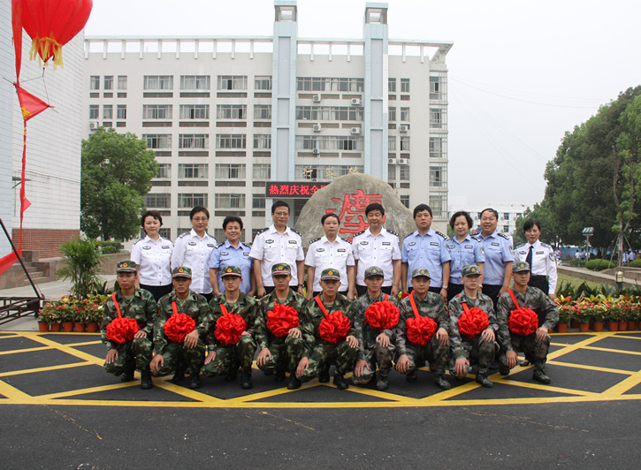 院長胡來龍、院黨委書記張國昌、副院長鄧生苗以及學生處負責人、五系書記為入伍學生帶上光榮大紅花并合影留念。成為光榮的解放軍、武警部隊的新兵戰士們將于