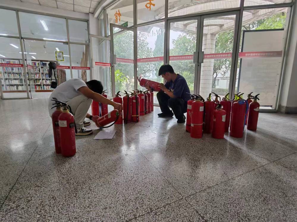 5月中旬,保衛處組織志愿消防服務隊隊員進入辦公樓、教學樓、圖書館、學生宿舍樓、食堂、超市、實驗室等場所,檢查、登記滅火器類型、數量、生產日期、罐裝日期等信息,進一步摸清底數,充分做好滅火器更換和罐裝準備工作。6月中旬,保衛處完成消防器材新購及罐裝項目詢價和中標候選人公示工作。7月份,保衛處將新購置的800具滅火器集中投放在教學樓、宿舍樓等人員密集區域,并對行政樓、圖書館、學生食堂等場所的滅火器完成罐裝更換。9月份,保衛處將最后罐裝的一批滅火器投放到駕校、運動場等區域,圓滿完成滅火器更換或罐裝等養護工作。