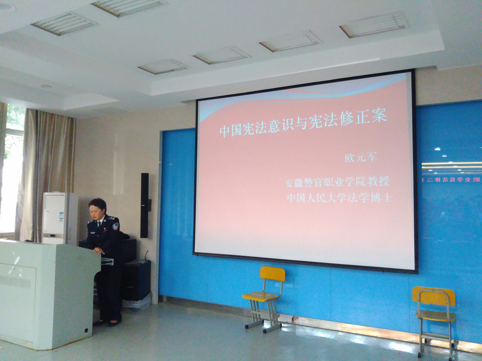 為深刻領會2018憲法修正案精神,強化廣大師生的憲法意識,4月25日下午,我系黨總支在東區教學樓二樓多媒體教室組織開展了以宣講憲法修正案精神為主題的黨日活動,邀請我系歐元軍教授作了題為《中國憲法意識與憲法修正案》的專題講座。講座由系黨總支書記朱玉璋主持,全系教職工和學生干部參加了講座。