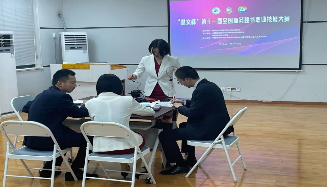 由中國對外貿易經濟合作企業協會主辦,全國商務秘書與行政助理專家委員會和湖州職業技術學院承辦的第十一屆全國商務秘書職業技能大賽于2021年11月20日采用“線下”“線上”結合的形式開賽。來自全國19個省、市、自治區87所本專科院校的159支代表隊相聚云端,同臺競技。