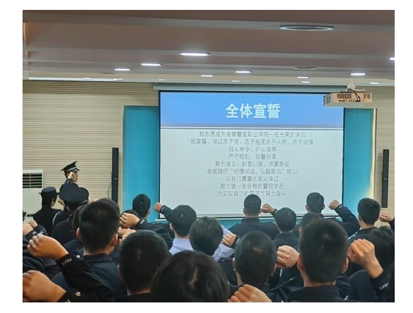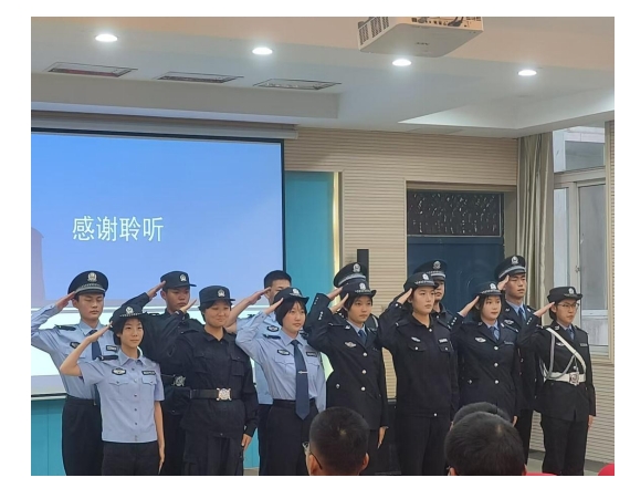 著裝教育大會(huì)在莊嚴(yán)的國(guó)歌聲中拉開帷幕,第一部分是著裝展示環(huán)節(jié),23級(jí)學(xué)生代表著不同季節(jié)、不同款式的警服進(jìn)行隊(duì)列動(dòng)作表演,學(xué)員們身姿挺拔、步伐整齊、動(dòng)作有力,利落的轉(zhuǎn)身、標(biāo)準(zhǔn)的敬禮充分展示了法律二系學(xué)子扎實(shí)的警務(wù)基本功和良好的精神面貌。緊接著大會(huì)的第二部分宣講環(huán)節(jié),首先由23文一的施書函同學(xué)對(duì)不同款式的警服著裝要求展開了介紹,大家對(duì)規(guī)范著裝有了更全面、更深刻的認(rèn)識(shí)。隨后24文六張玉嬌同學(xué)進(jìn)行了人民警察禮儀宣講,宣講過(guò)程中警耀秘書事務(wù)所的同學(xué)穿插進(jìn)行了人民警察禮儀操展示,讓大家深刻體會(huì)到了警察禮儀的獨(dú)特魅力。大會(huì)的最后一部分是宣誓環(huán)節(jié),由施書函同學(xué)帶領(lǐng)全體參會(huì)人員進(jìn)行莊嚴(yán)宣誓:“我宣誓,保證忠于黨、忠于祖國(guó)與人民、忠于法律……”整齊洪亮的宣誓聲回蕩在報(bào)告廳上空。