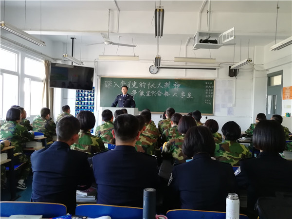 在學生預備黨員、發(fā)展對象及入黨積分子培訓會上,第四支部書記徐愛民以“深入學習黨的十九大精神,爭做當代合格大學生”為主題的報告。他勉勵全體學員以十九大精神為指引,堅定理想信念,不斷加強理論學習和專業(yè)學習;嚴格遵守學院的警務化管理制度;培育健康向上的人格和積極樂觀的生活態(tài)度;勇敢擔當,爭當先鋒,發(fā)揮模范作用。