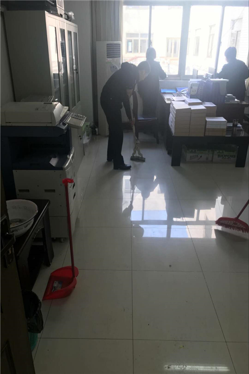 3月21日下午,2017級法律事務9班同學分兩組分別前往系部樓和行政樓幫助老師打掃辦公室。