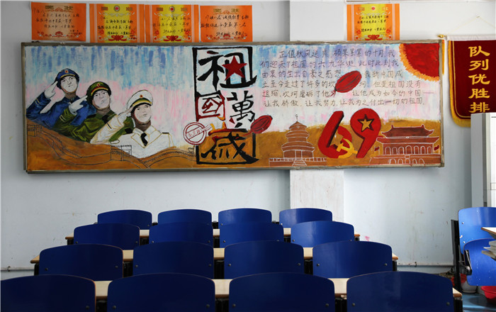 金秋舞國旗,晨曦迎華誕,各班級學生懷揣著對祖國無比熱愛之情,認真設計,板報主題突出,特色各異,精彩紛呈,深情表達對偉大祖國69華誕的美好祝愿!