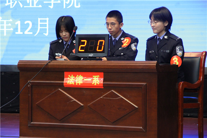 法律一系系領導及學生科老師高度重視此次競賽活動,從前期規劃戰略戰術,到精心組織安排演練,經過預賽緊張的籌備與激烈的選拔,共選拔出三名優秀選手代表法律一系參加決賽。備賽期間,各班級組織學生積極支持,學生科老師悉心指導,并帶領參賽選手反復模擬,檢驗備戰效果。17級法律事務二班梁敏琴、17級法律事務三班李亭、18級法律事務三班王善勛三位選手團結協作,沉著思索,慎重回答,積極搶答,經過個人必答、搶答、團隊必答、加賽四個環節的比拼,勇奪桂冠。