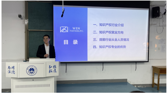 隨后,王澤洋律師以“知識產權行業介紹與職業發展”為題,注重用數據說話,深度剖析行業案例,緊密結合自身工作經歷與感悟,分別從知識產權行業介紹、就業方向、專業優勢及目前行業從業人員情況等四個方面展開講解。同時,他與在座同學們互動交流的過程中,分享了個人專業學習的經驗與方法,大大激發了學生們的學習熱情,堅定了專業學習信心,明確了未來學習的方向與目標。(王蔚)