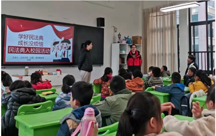 12月7日,法律一系徐麗艷老師在合肥市高新區楊林小學、合肥市夢園小學教育集團楓林路學校開展以民法典如何保護學生權益和憲法宣傳為主題的普法講座,講座現場徐老師和學生互動頻繁,反響熱烈。
