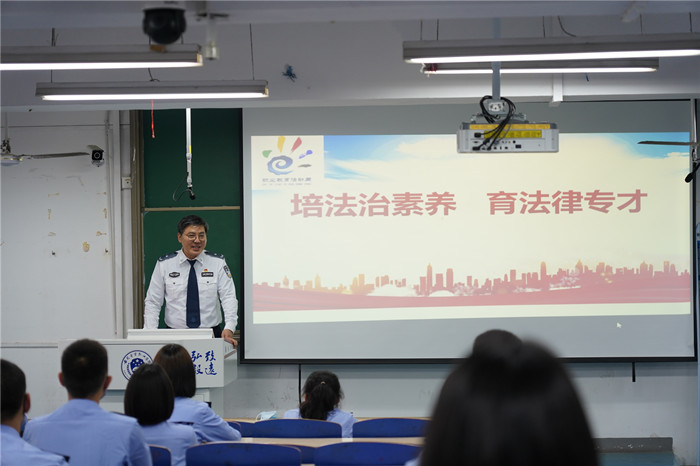 我院省級教學名師、省級技能大師工作室領銜人劉輝教授從法理視角和法治思維層面為我院學生介紹了《職業教育法》的立法背景、立法進程和法律核心要義,對職業教育法進行了解讀,講述了修法的3個階段和重要意義。劉教授還結合我院警法特色職業教育秉承的“立足行業,面向政法,服務社會”的基本指導思想,以培養崗位職業能力和職業素養為宗旨,以法律職業技術工作領域或崗位的技術應用能力和基本素質培養為主線,對提升學生的法律職業素養和規劃法律職業前景給予指導,他倡導在座法學專業的學生不斷提升法治素養,培養法治思維,做法律的宣傳者、踐行者。