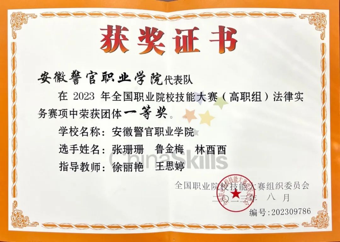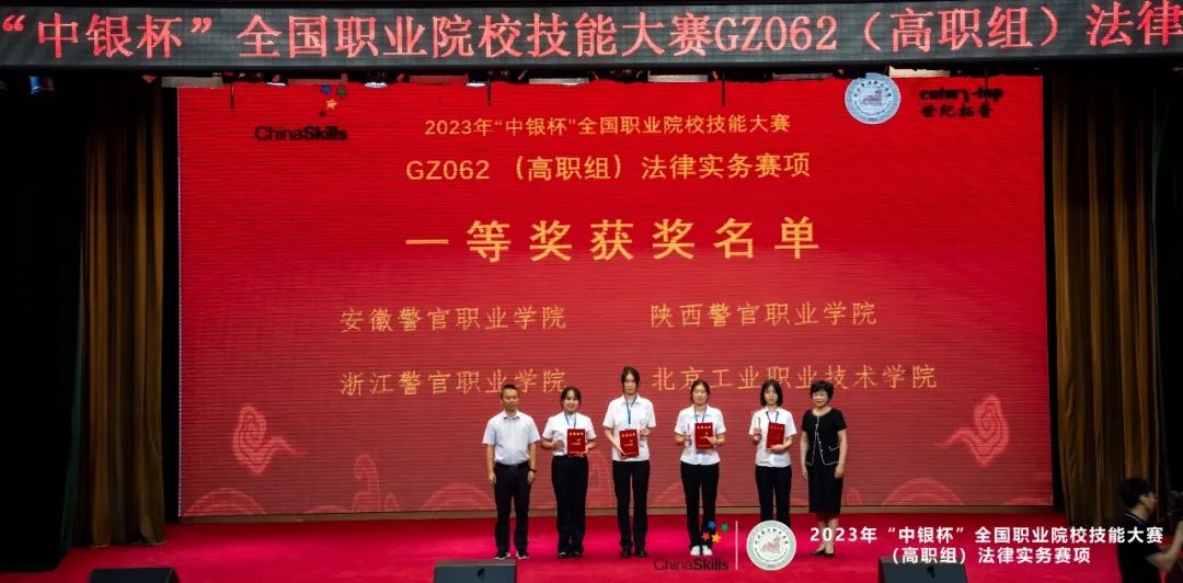 8月25至27日,2023年全國(guó)職業(yè)院校技能大賽(高職組)法律實(shí)務(wù)賽項(xiàng)在河北政法職業(yè)學(xué)院成功舉辦。經(jīng)過(guò)兩天激烈的角逐我系法律事務(wù)專(zhuān)業(yè)魯金梅、張珊珊、林酉酉三名學(xué)生組成的代表隊(duì)以出色的表現(xiàn)脫穎而出,獨(dú)占鰲頭,最終以總分第一名91.3分的高分獲得該項(xiàng)賽事團(tuán)體一等獎(jiǎng)!徐麗艷、王思婷兩位指導(dǎo)老師榮獲“優(yōu)秀指導(dǎo)教師”稱(chēng)號(hào)。實(shí)現(xiàn)了學(xué)院參加全國(guó)職業(yè)院校技能大賽團(tuán)體一等獎(jiǎng)新的突破!