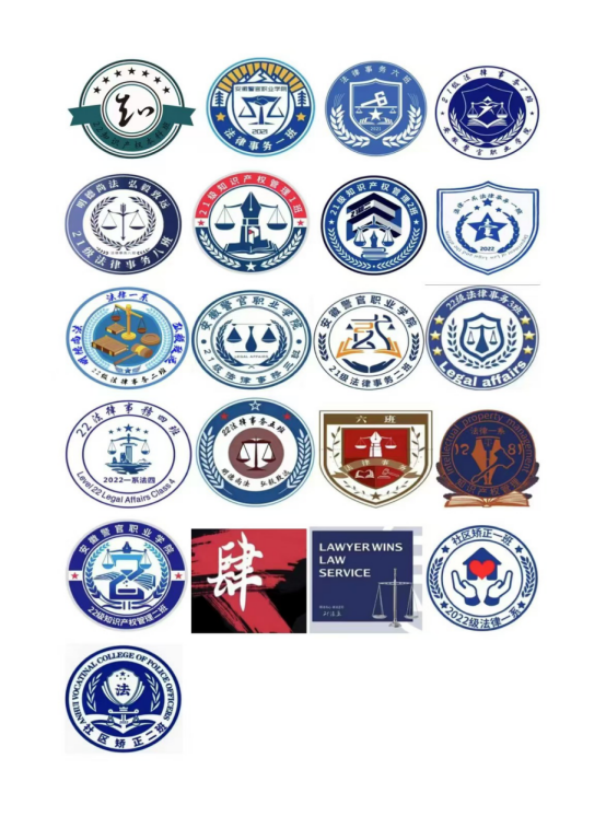 班級文化是一種隱性的教育力量,表現出一個班級獨特的風貌和精神,對學生身心發展有舉足輕重的作用。班徽是班級個性文化的集中展示,是一個班級的標志,可以體現一個班級的精神面貌和其獨特的風格特點,代表了一個班的形象,也會增強班集體的凝聚力和向心力;又能促使學生思考班級需要怎樣的精神,從而盡快形成良好的班級文化。做好班徽設計,有助于挖掘學生的創造力、合作力,增強學生對班級集體的認同感、自豪感和班級凝聚力。法律一系各班都設計了獨特的班徽,展示如下: