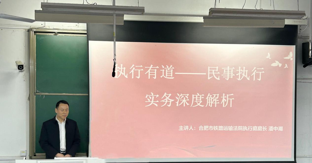 為進(jìn)一步深化產(chǎn)教融合、校企合作,提升學(xué)生法律職業(yè)技能素養(yǎng),12月13日下午,法律一系在3號(hào)教學(xué)樓105教室舉辦民事執(zhí)行實(shí)務(wù)專題講座,合肥鐵路運(yùn)輸法院執(zhí)行庭庭長(zhǎng)潘中潮受邀作專題報(bào)告。法律一系副主任汪美俠主持,民事執(zhí)行專業(yè)師生130余人參加。