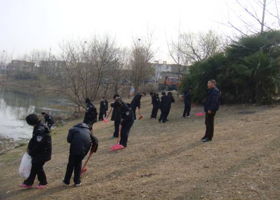 同學(xué)們組織有序的來(lái)到護(hù)城河后便開(kāi)始了清理維護(hù)工作,在