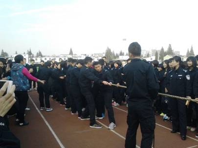 當(dāng)比賽的哨聲一響起,隊員們口中高呼著“一二,一二”,雙手緊握長繩,憋足了勁拼命往后拉,女生們更是不甘示弱,一個個咬緊牙關(guān),將巾幗不讓須眉的精神風(fēng)貌揮灑的淋漓盡致,班主任也在隊伍旁邊助陣加油,恨不得抓著繩子跟學(xué)生一起努力!觀戰(zhàn)的同學(xué)們自發(fā)組成啦啦隊為本班同學(xué)加油打氣。號子聲,吶喊聲,此起彼伏,回蕩在整個足球場。