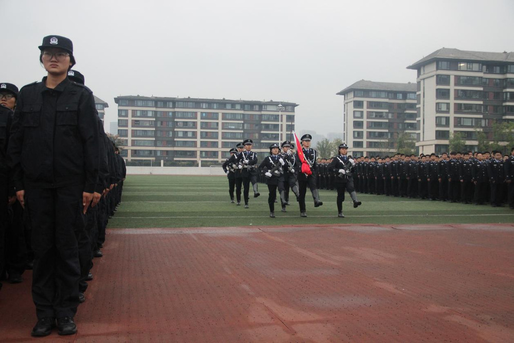 上午6時57分,軍樂團演奏完《歌唱祖國》后,學院國旗護衛隊邁著矯健的步伐,護送著鮮艷的五星紅旗緩緩步入操場南中央。護旗隊員們步伐鏗鏘有力,展現出新時代警院青年的颯爽英姿。