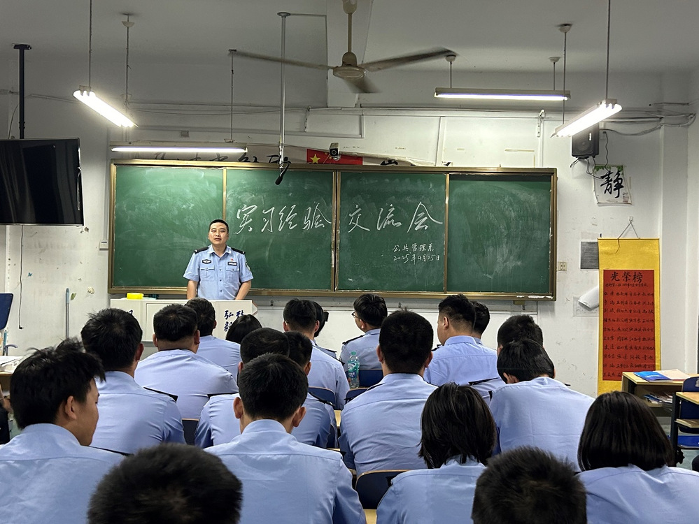 會上,10余名2023級行政管理專業實習學生代表,依次分享了他們在監所單位、公安機關或自主實習單位等崗位上參與社會實踐的工作內容、心得收獲和成長經歷。在九成監獄管理分局實習的王前浩同學說:“因為實習,讓自己更加明白作為一名警院學子,要在各種實踐崗位上把這身警服穿得有責任,穿得有擔當,穿得有意義。”在舒城縣公安局實習的徐盼盼同學說:“實習的這段時光就像一本厚重的現實教科書,讓我對人民警察工作有了前所未有的深刻認識,拓寬了視野,積累了社會經驗,提高了解決實際問題的能力。”
