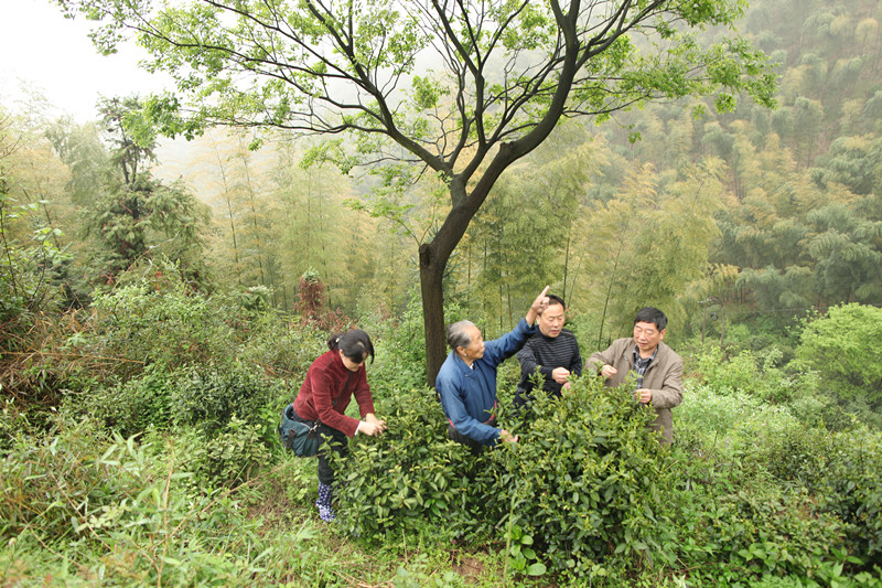 采茶間,偶然發現了坎下的一棵大茶樹旁,立著一位年邁的老嫗,正在摘茶。我們好奇地走上前問:“老人家,高壽啊?”她答到:“九十啦!”,令人吃驚。老人家耳聰目明,聲音洪亮,身板硬朗,大家都輪著靠近,與她合影留念。她一邊不停地摘茶,一邊還和我們搭訕著:“村里九十多的,有好幾個呢!”。不由得令人感嘆:山川秀色,人壽年豐。