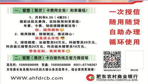 肥東農村商業銀行為了拓展業務,專門針對我省監獄、戒毒系統人民警察量身打造了“愛警卡”貸款品種,以滿足廣大民警家屬消費周轉的需要。其產品具有額度高、期限長、利率低、擔保方式簡單、隨用隨貸并循環使用,自助辦理方便快捷。有需要者請按要求準備相關材料,(需要資料均為兩份:1.夫妻雙方身份證復印件2份,2.結婚證2份,3.警官證復印件2份,4.房產證復印件1份。未婚要有未婚狀況證明。注意需要三人以上為組聯保上報,同時,請攜帶自己的身份證原件)于6月17日(周五)上午在院工會集中辦理。