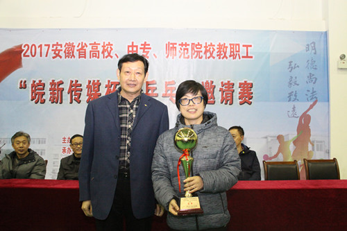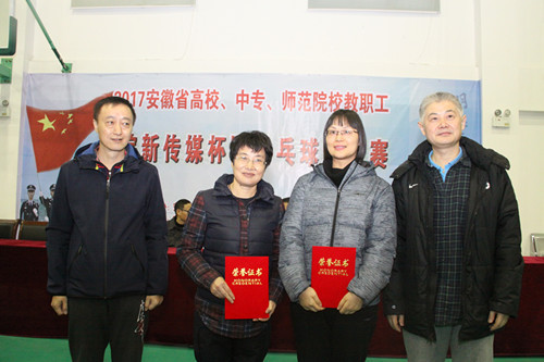 本次比賽設(shè)男、女團(tuán)體,男、女單打和領(lǐng)導(dǎo)干部單打項(xiàng)目。經(jīng)過兩天的激烈角逐,合肥學(xué)院代表隊(duì)、安徽醫(yī)科大學(xué)代表隊(duì)分別獲得男、女團(tuán)體冠軍,來自合肥學(xué)院的華順、中澳職業(yè)技術(shù)學(xué)院的孫敏分別獲得男、女單打冠軍,安徽職業(yè)技術(shù)學(xué)院的郭淼獲得領(lǐng)導(dǎo)干部組單打冠軍。