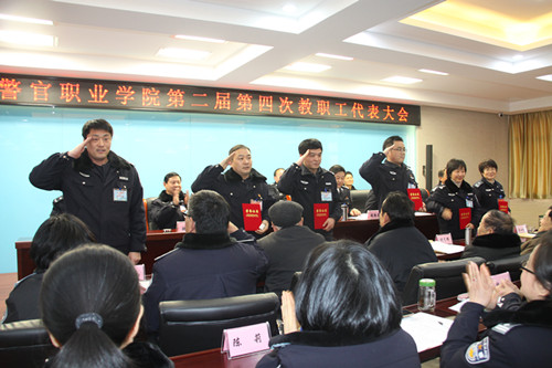 2018年1月29日上午,安徽警官職業學院第二屆第四次教職工代表大會在多功能會議廳如期召開。會議由院黨委書記張國昌主持,院黨委副書記胡愛國致開幕詞,院長胡來龍,副院長孔國荃、鄧生苗,院長助理周善出席大會。全體正式代表、特邀代表、列席人員共計104人參加了開幕式。